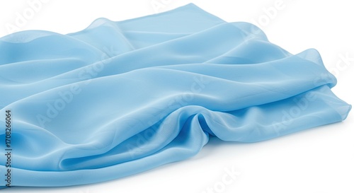 Light Blue Fabric Flowing in Soft Waves on White Backdrop