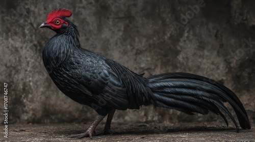Melanistic Mutant Pheasant Rooster Majestic RedFeathered Beauty for Fashion, Art, and Lifestyle Projects, Inspiring a Sense of Dramatic Mystery and Allure.