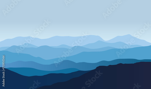 Blue vector landscape with silhouettes of misty mountains