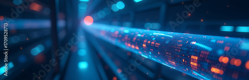 data stream flows sleek futuristic pipeline illuminated soft blue ambient light shallow depth field