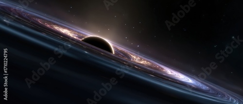 Dramatic black hole with accretion disk in deep space, showcasing gravitational lensing and cosmic phenomena Concept of astrophysics, singularity, and theoretical physics