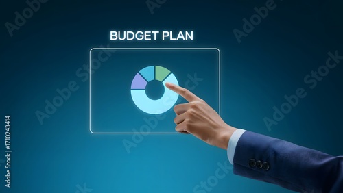 Financial Strategy: An individual interacts with an innovative interface displaying a budget plan, highlighting the analytical approach to financial management.