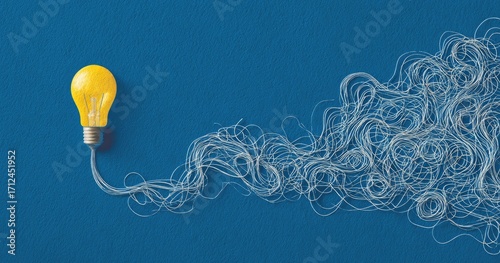 Bright idea lightbulb untangling a complex chaotic mess of wires.