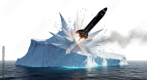 Dramatic rocket impact into iceberg illustration, contrasting elements concept design