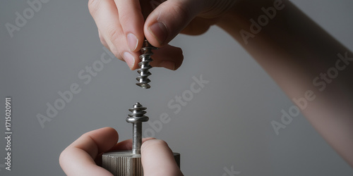 Metalowe części z gwintem w rękach