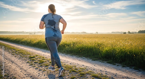 City Canopy Shuffle: Plus-Size Woman with Headphones on Urban Greenway