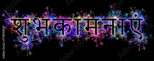 Kolorowe zimne ognie i fajerwerki układające się w kształt życzenia ALL THE BEST w języku hindi.