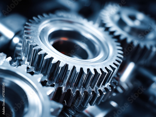 Close-up of metallic gear wheels showcasing precision engineering and mechanical components