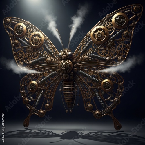 Steampunk Mechanical Butterfly With Gears and Steam