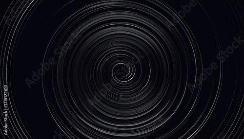 spiraling silver lines on black background, abstract swirling motion, geometric pattern, minimalistic vortex design, dark spiral texture