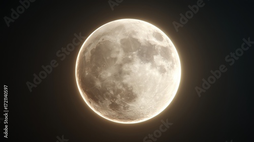満月が輝く夜空の美しい光景。宇宙や天体関連の資料や背景に最適な月の写真。