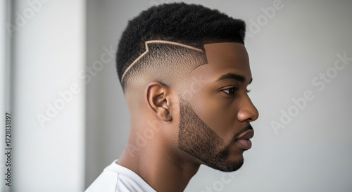 Stylish african american man with a modern haircut and beard, showcasing a clean and fashionable look