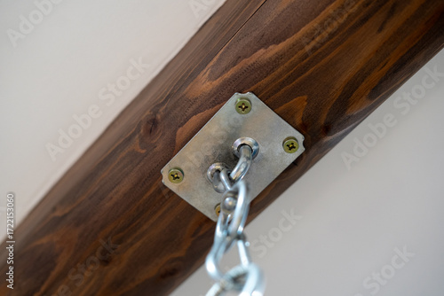 Mocowanie łańcucha do drewnianej belki sufitowej