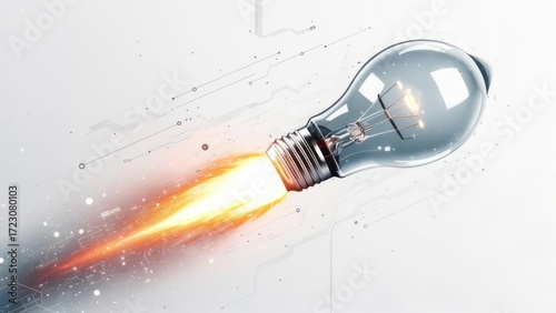 Ignite your next big idea with a brilliant, high-speed lightbulb concept launching forward into innovation and success