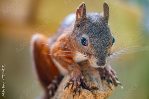 The closeup image of Red squirrel. it is a species of tree squirrel in the genus Sciurus common throughout Eurasia. The red squirrel is an arboreal, omnivorous rodent.