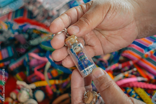 Detalle de artesanía guatemalteca en miniatura hecha a mano