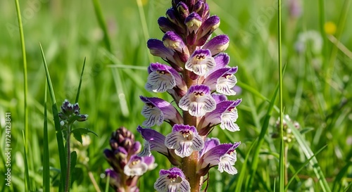 Striking close-up of broomrape flower against vibrant greenery backdrop