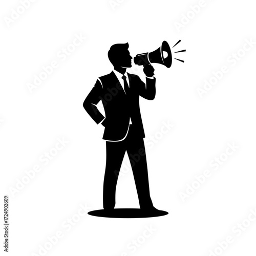 Communication Silhouette of a Businessman Holding a Megaphone Making an Important Announcement