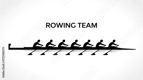 Rowing team silhouette isolated on white background eight rowers in a boat, rowing in sync sport team vector illustration isolated on white background