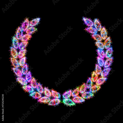 Kolorowe zimne ognie i fajerwerki układające się w kształt wieńca laurowego symbolu zwycięstwa.