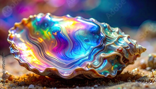 Vibrant iridescent seashell, close-up