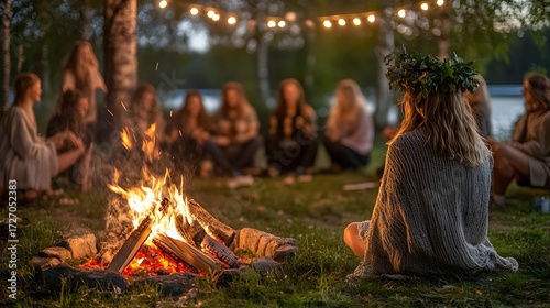 Friends at midsummer bonfire.