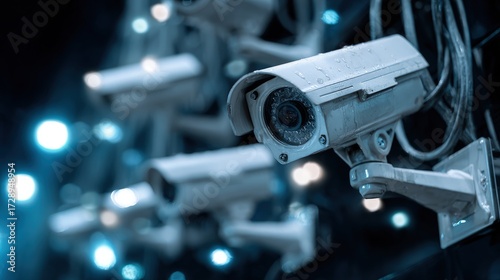 Multiple Security Cameras In Dark Setting With Water Droplets