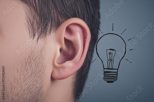 An illustration showing a lightbulb placed within an ear, symbolizing receptiveness to helpful feedback for growth in career and life.