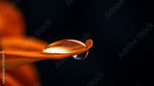 An extreme close-up of an orange flower petal with a water droplet, revealing delicate refractive details.