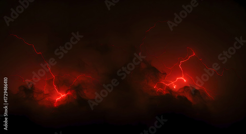 Red lightning cracks through the darkness