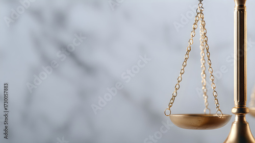 Close up of golden scale balance on white background. Justice and equality legal concept. Law and court symbol for business.