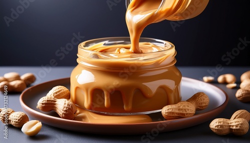 creamy peanut butter drips tantalizingly down screen creating irresistibly smooth and decadent visual effect