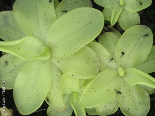 Zbliżenie na młode rozety rośliny z gatunku pinguicula