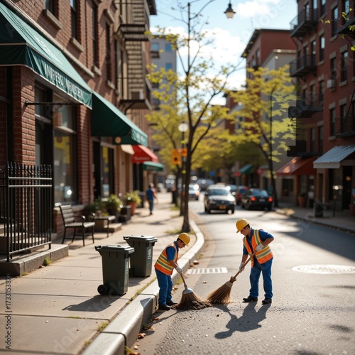 Children in Safety Vests Cleaning Street During Sunny Day in City