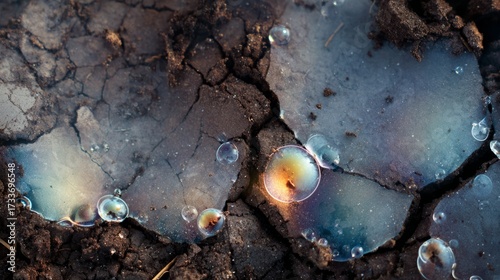 Permafrost, cracked, macro, photos, ethereal, luminous, carbon dioxide, bubbles, escape, in the atmosphere, presenting an unforgettable beauty, decoration, silver, jewelry, christmas, glass, gift, gol