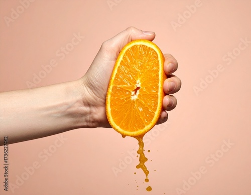 フレッシュなオレンジを絞る 果汁 柑橘系のフルーツ ビタミンC 健康