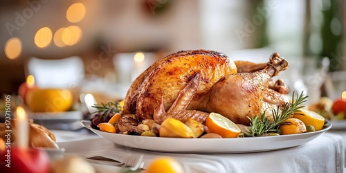#716033431Bake roasted turkey dish for luxury traditional thanksgiving holiday gathering dinner