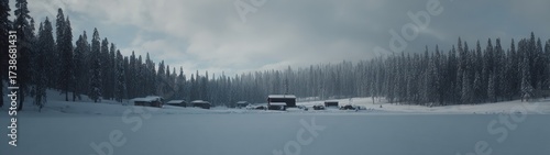 Winter landscape with snow covered ground and trees nature scene under the grey sky