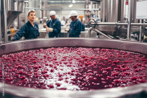 Paint factory manually mixing large vats of paint, using industrial mixers to blend pigments and base materials