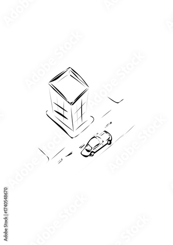 Stadt Scene mit Straße Haus und Auto