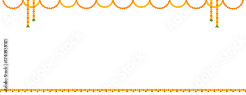 Marigold flower garland elements different types decoration mala: traditional celebration festival of Diwali, deepawali, wedding, invitation, card, floral, dussehra, vector png design