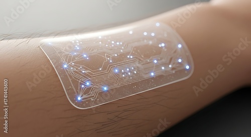 Advanced Technology E-Skin Sensor : Seamlessly Conforming to Human Skin, Wearable Tech, Medical, AI, Robotics, and Futuristic Healthcare Innovation.