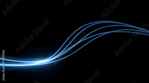 A smooth, flowing abstract image featuring blue light trails against a dark background, evoking a sense of speed and motion