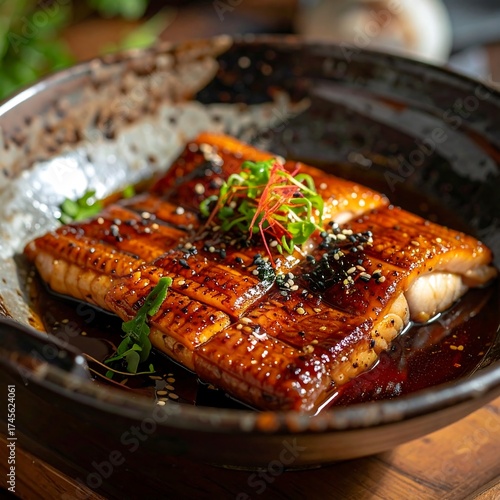Grilled eel dish in a bowl