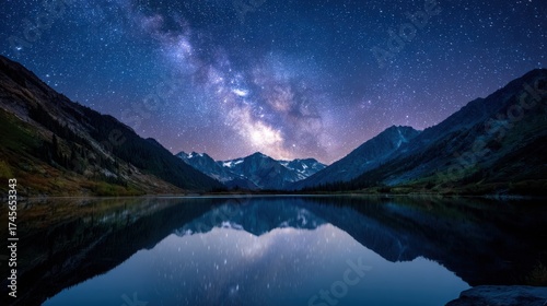 majestic night sky over mountain range, millions of stars and Milky Way reflected in calm lake, soft moonlight on peaks, ultra realistic, cinematic