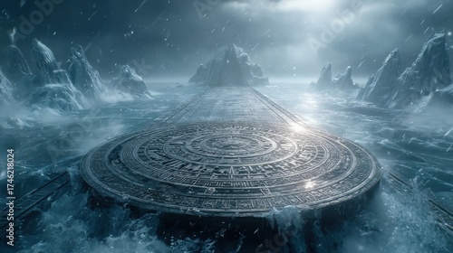 Cinematic discovery of an ancient frozen temple in a mystical arctic landscape epic adventure stunning visuals