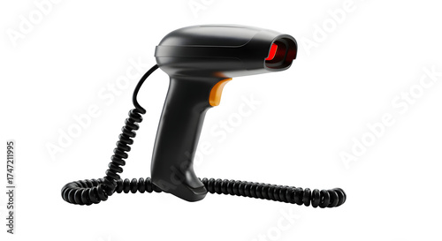 Black textured scanner reflects red light. Ideal for product staging, technology posters, and branding mockups.