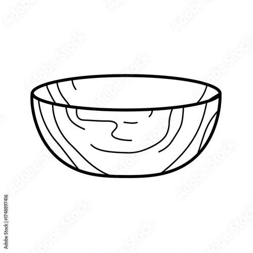 simple bowl, its shape defined by thick, black lines and filled with pattern that suggests natural grain of wood, presented against plain white background