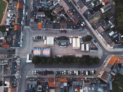 Fair in a town square - Top down aerial view