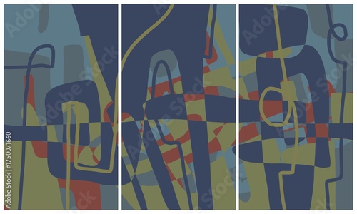 Minimal modern interior triptych. The picture is painted by hand on a tablet.